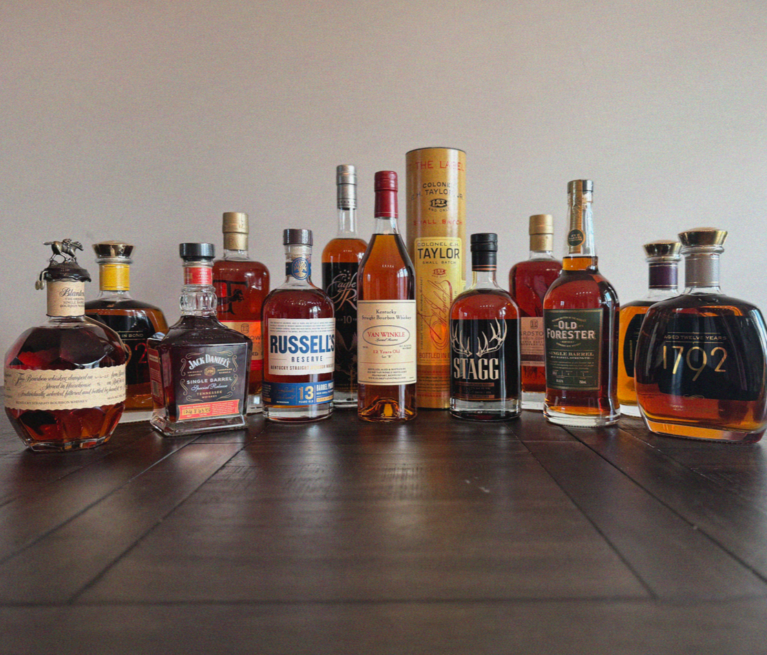 Pappy Van Winkle Special Reserve 12 Year Lot “B” | Russell’s Reserve 13 Year | Jack Daniel’s Single Barrel Special Release | Stagg Kentucky Straight Bourbon | Eagle Rare* | E.H. Taylor Small Batch* | Blanton's Original Single Barrel* | Weller Antique 107 | Old Forester Single Barrel Rye | 1792 Aged 12 Years 1792 Bottled in Bond | 1792 Cognac Cask Finish | Bardstown Double Barreled Discovery Series | Bardstown Ferrand | Penelope Toasted Bourbon